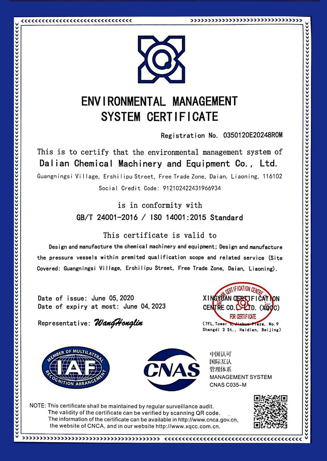 环境管理体系认证证书(英文)