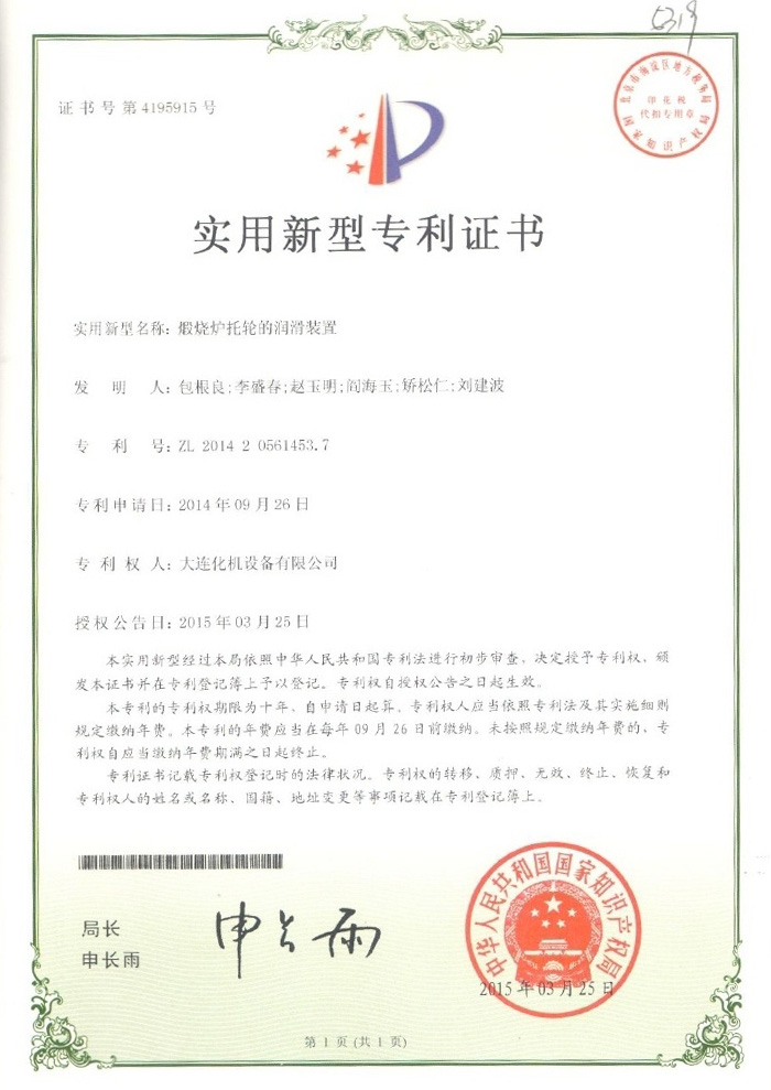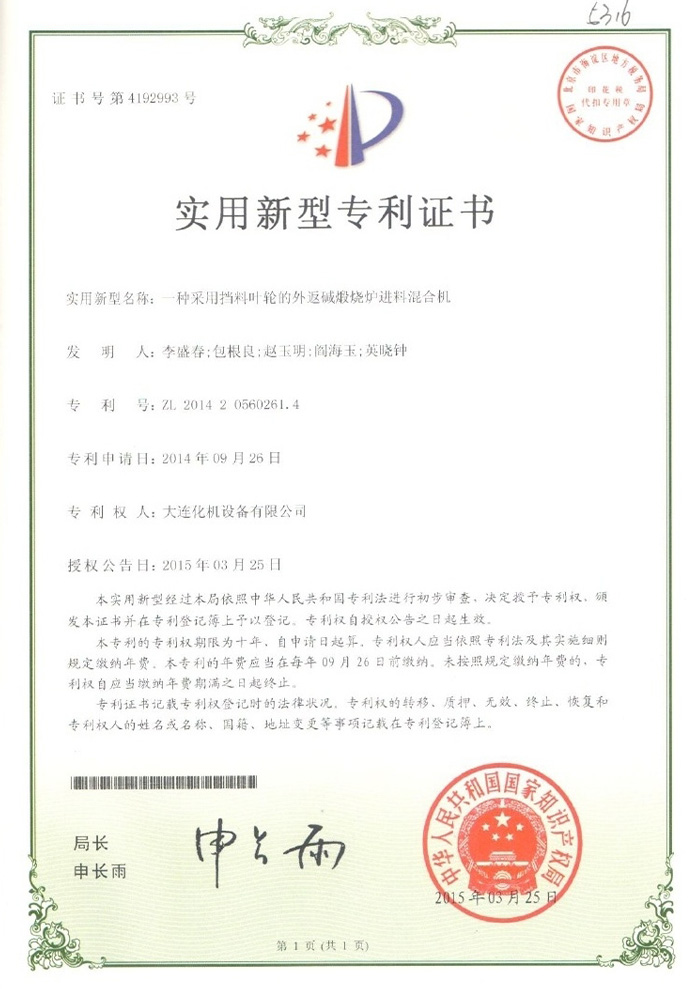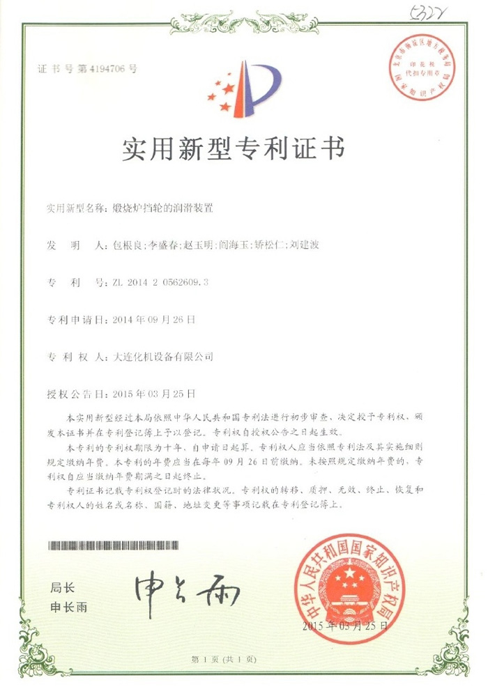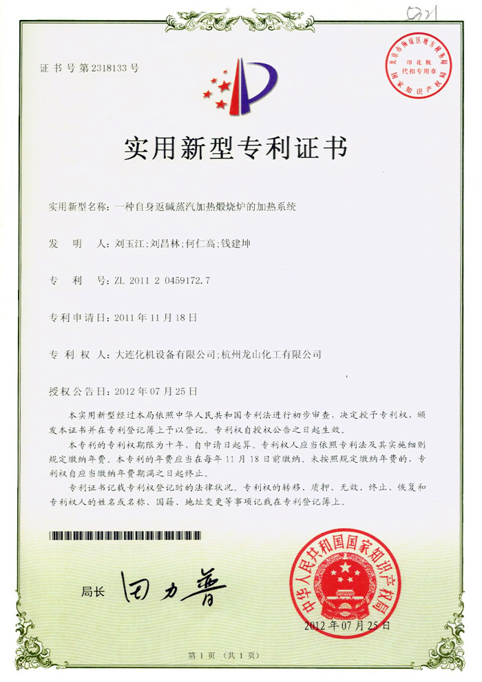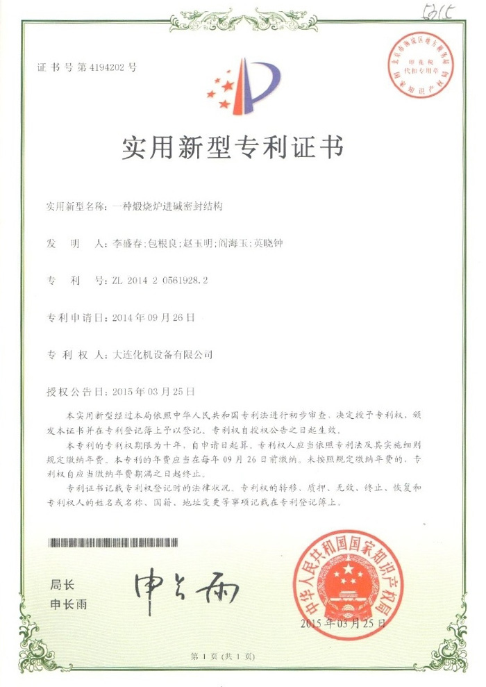 煅烧炉专利证书